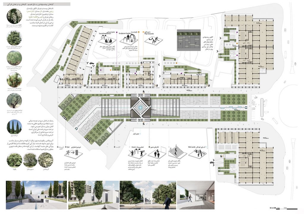 Landscape design of Naeem Garden tries to create an urban space near the holy places of Mashhad; Urban landscape design in this project wants to connect the city to the sacred area.
