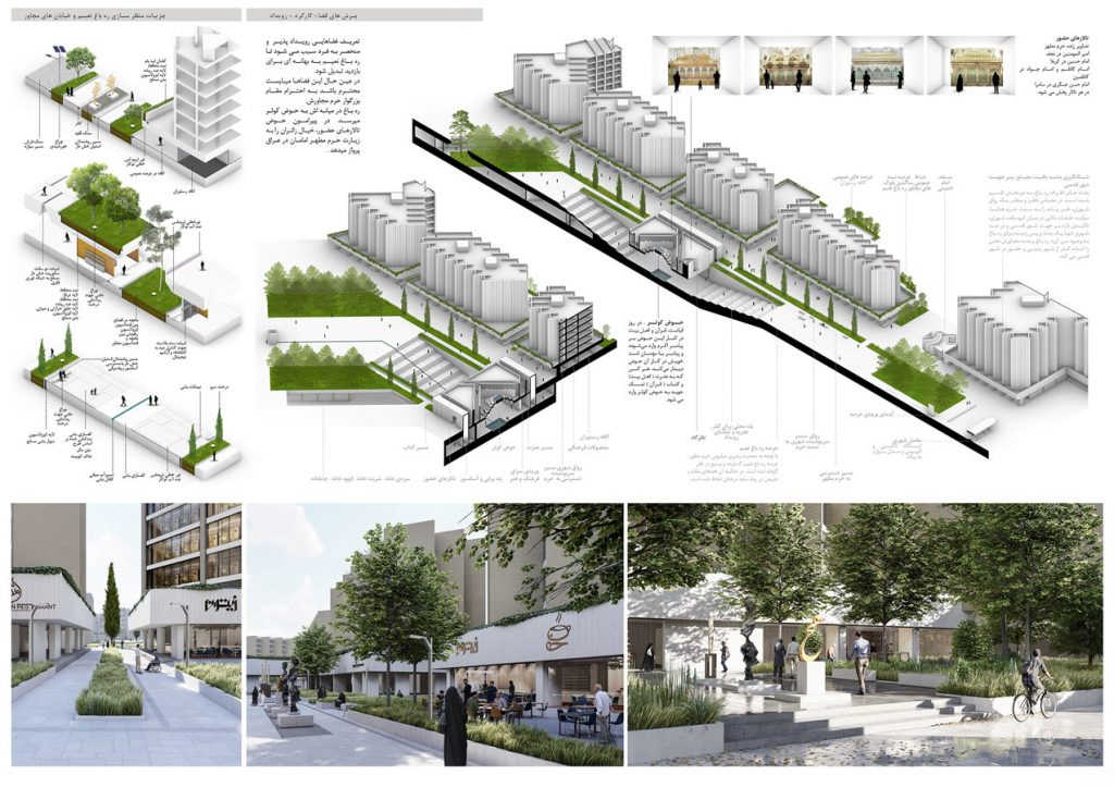 Naeem Garden near the shrine of Imam Reza is a dynamic and respectable space due to the grandeur of the nearby shrine. It does not appear in front of it, nor is it passive and anonymous. The Naeem Garden is attached to the holy shrine to make it easier to understand in the city. It is a garden whose jewel is the holy shrine. It does not diminish the pleasure of being in the holy city from the outside, but inside it is full of life. Naeem Garden provides an opportunity to become a respectable promenade near the shrine of Imam Reza. The middle element of Naeem Garden is part of the central plaza to prepare for the presence in the holy city.